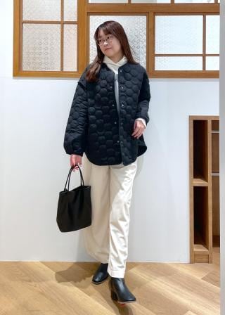 キルティングのデザインなので、カジュアルでもキレイめでもどちらでも合わせやすいですよ。