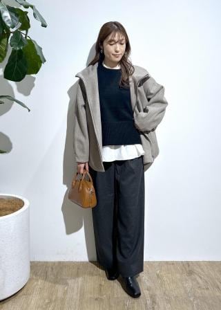 ロングワンピースやニット+スカートでオフスタイルに、ブラウス+パンツでオンスタイルに着こなしを選ばず着回しして頂きやすいです。