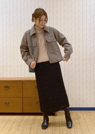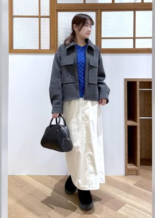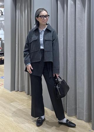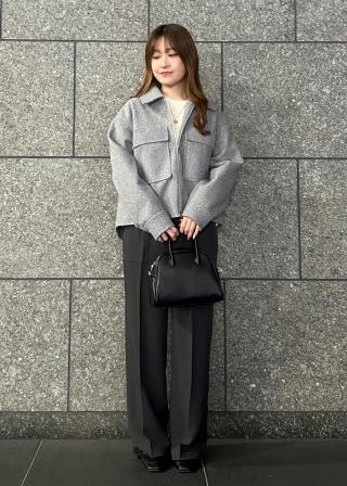 冬にも対応してくれる厚みです。中肉程度のニットなら問題なく羽織れるサイズ感。着丈は腰が隠れる長さ。襟付きなのでスタイリッシュな雰囲気を作れます。