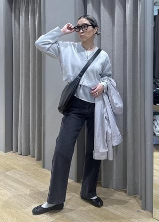 ・カジュアルな着こなしには、裏毛カットソーをインナーに合わせた今年らしいコーディネートも◎。