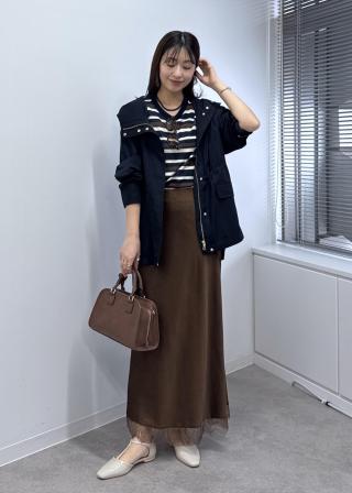 ・スカート合わせはウエストを絞ることで、すっきりとした好バランスに。