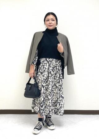 ・甘いプリントワンピースに羽織るスタイリングもおすすめ。