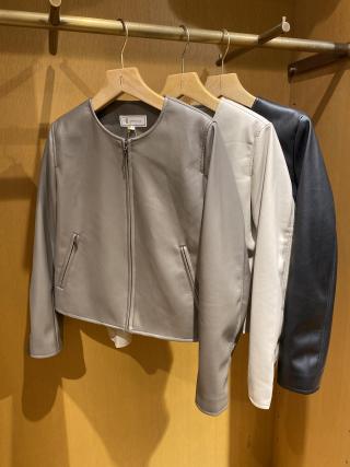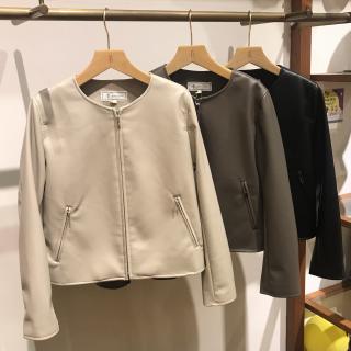 フェイクレザーノーカラーブルゾン