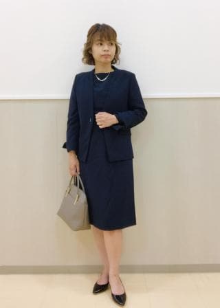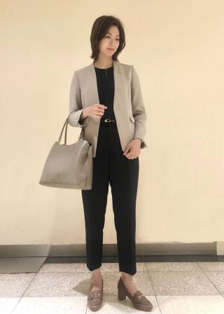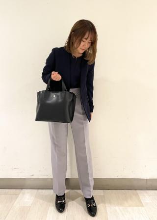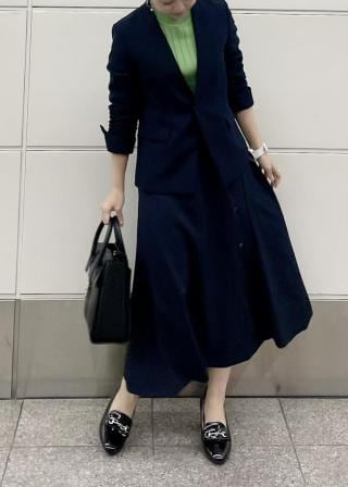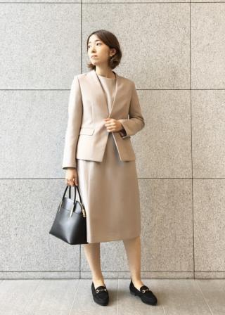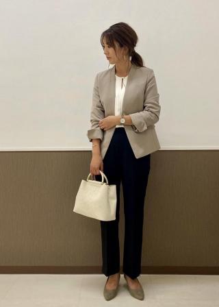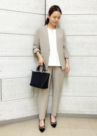 同カラー合わせは、きちんと感が出て良いですが、同素材で別カラーの組み合わせもおススメです。