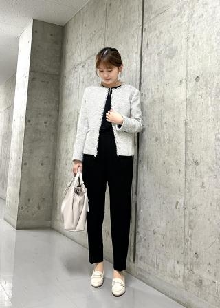 おすすめコーデ:華やかに着飾りたいセレモニースタイルをはじめ、お出かけできちんとしたい時にも。ノーカラーで派手すぎないシンプルなデザインなので、スカート、パンツ、ワンピースと、色々なアイテムとコーディネートしやすいです。