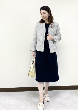 ・無地のエレガントなワンピースに羽織って、セレモニーコーデが完成。