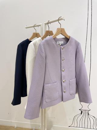・ツイードライクな素材で仕立てたカラーレスジャケット。