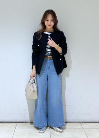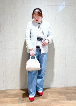 少し長めの丈感で腰回りもしっかりとカバーしてくれます。154㎝の私で36着用でもゆとりがあり、38だと大きく感じました。トレンドに左右されないツイードジャケットですので長くお召しいただけますよ。