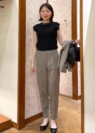 肩周りや身頃はフィット感があるので、きちんとした感じもあり、オフィスカジュアルにもおすすめです。