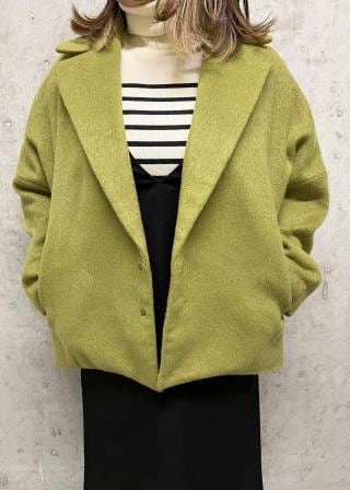 ・体のラインを包み込む、コクーンシルエットのショートコート。