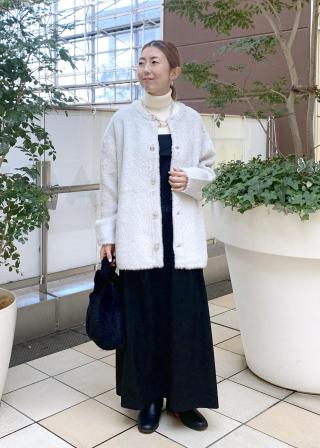 ふわふわのデザインが女性らしいアウターは、軽い着心地で長時間のお出かけにもお勧めです!