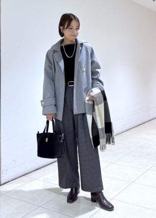 柔らかく軽い羽織り心地で、とても着やすいアウターです。ゆったりしたサイズ感なので、厚手のニットの上からでも羽織れます。また寒さが厳しい時期はインナーダウンを仕込んで着用するのもおすすめです。着丈はヒップが隠れるくらいの長さで、パンツにもスカートにも合わせやすいです。