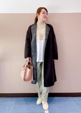 着心地: オーバーシルエットでロング丈ですが、Wフェイス仕立てでも軽く楽に羽織れます。