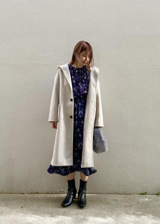 おすすめコーデ:ロングコートでフロントボタンを止めても開けても可愛く、更にキレイめにもカジュアルにも対応する、毎日使える万能アウターです◎