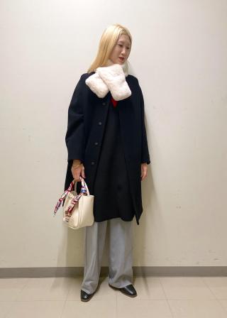 ノーカラーなのでタートルネックやストールと合わせやすいです。