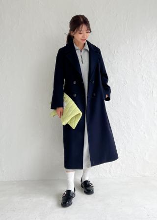 柔らかく軽いジャージメルトン素材で、ロング丈でも重みを感じずに羽織りやすいです。