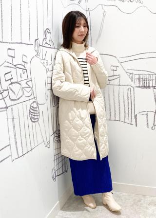 大判のキルティングがアクセントなコートは、きれいめなスタイルにはフードを外してその時のコーデで雰囲気を変えれる、万能なコートです。