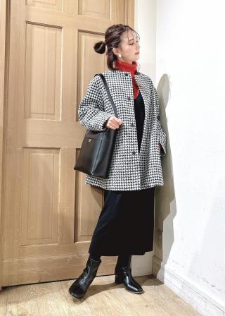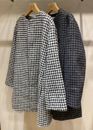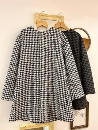 【WEB限定カラー:チェック】ハウンドトゥースツイードミディ丈Aラインコート