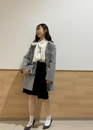 ・シルエットラインが繋がるフレアスカートや、パンツルックと合わせやすい。