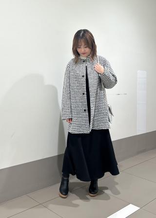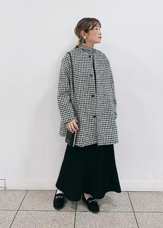 【WEB限定カラー:チェック】ハウンドトゥースツイードミディ丈Aラインコート