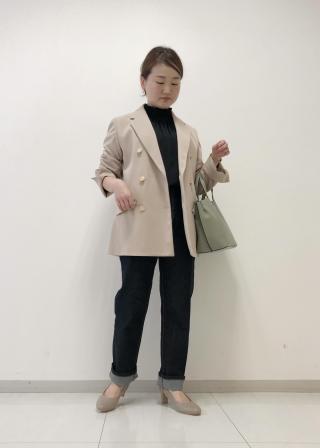おすすめコーデ:金ボタンがオシャレなメンズライクなジャケットなので、フレアパンツやスラックスなので、オシャレに着こなすのがオススメです。