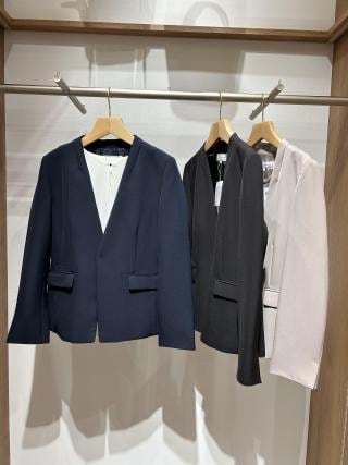 ・顔まわりがすっきり仕上がるノーラペルジャケット。