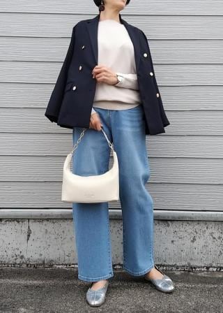 ・ボーダーTシャツ×ジーンズに羽織って大人なマリンスタイルに。