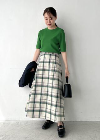 カジュアルなチェックのボトムなどとも相性が良いです。
