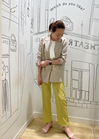 リネンライクな素材なので夏→秋へシフトするタイミングにぴったりです。裏地なしなので残暑が続くシーズンにも長くお召しいただけます。きちんと見えする素材感なのでオフィスでも◎。