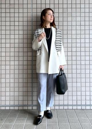 ゆったりしている分中に着込めるので、3月のまだ肌寒さの残る時期にはスプリングコート感覚で、4月は徐々に薄手のインナーにシフトしていただきジャケット感覚で、長い期間お楽しみいただけます!