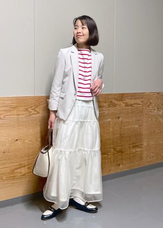 長さは腰丈なのでパンツ、スカートどちらにも合わせやすい丈感です。
