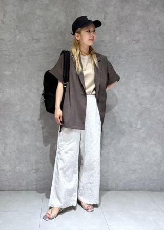 ・同シリーズのワイドパンツとセットアップでも取り入れられる。