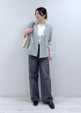 ・王道セットアップ:同素材のパンツやスカートと合わせれば、迷わず決まる最旬のお仕事スタイルに。