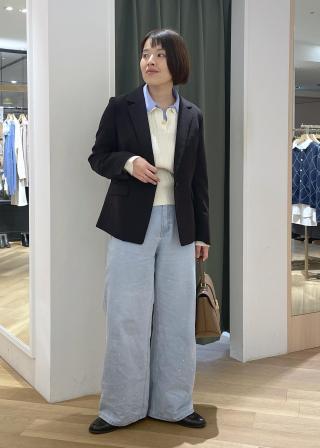 襟付きなので、ノーカラーよりクールな印象に見えます。