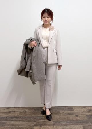ストレッチ性があり着やすく、軽くて羽織りやすいです。セットのパンツで合わせてオフィスカジュアルで着るのもおすすめです。