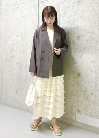 ・ロングワンピースに羽織って、フェミニンなスタイリングに。