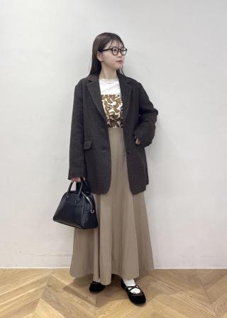 少し大きめなのでボトムスはスッキリ見えるデザインのものと合わせています。