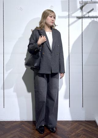・グレンチェックは、フレアジーンズに合わせてノスタルジックなスタイルに。