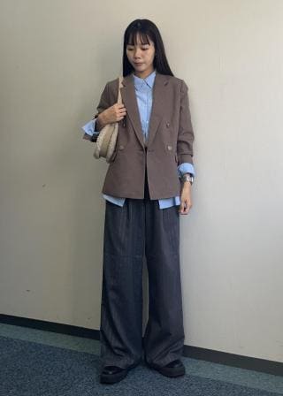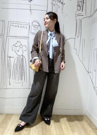 ・ダブルブレスト仕様でシルエットが引き締まり、マニッシュな雰囲気を演出。