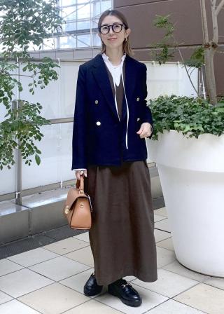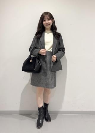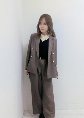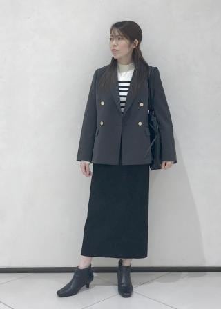 ・ダブルブレスト仕様でシルエットが引き締まり、マニッシュな雰囲気を演出。