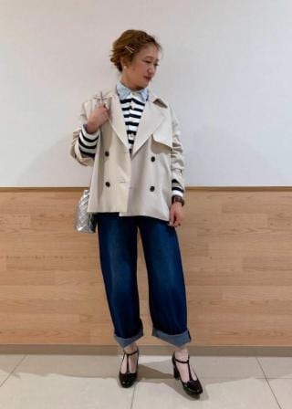 ・春先から使いやすいショート丈のトレンチコート。