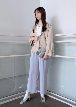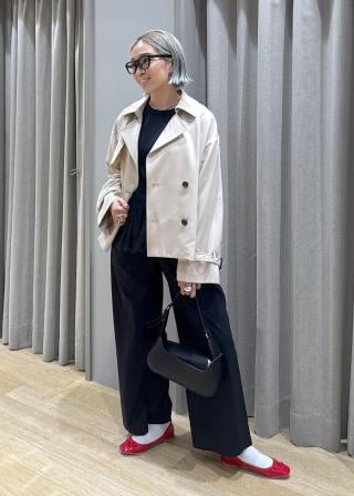 ・季節の変わり目に便利なショート丈トレンチコート。