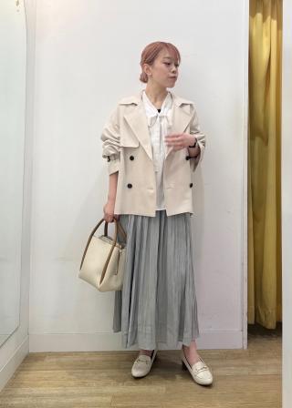 柔らかい素材でサッと羽織れるトレンチコート。丈感もちょうどよくスカート、バランスよくお召しいただけます。腰回りもしっかりとカバーしてくれるので安心感があります。