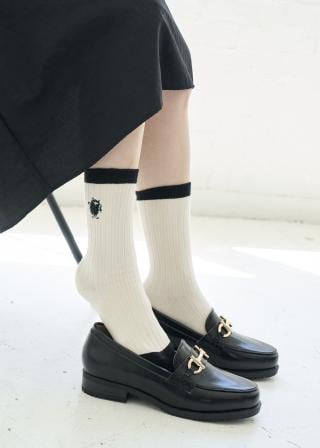 ・キャラクターのワンポイントそ添えた、配色デザインのソックス。