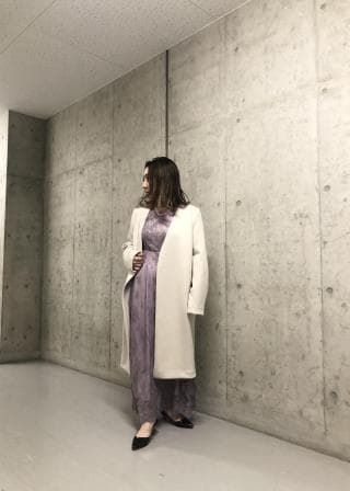 ・カーディガンを羽織ればプライベートのお出かけにも活躍。