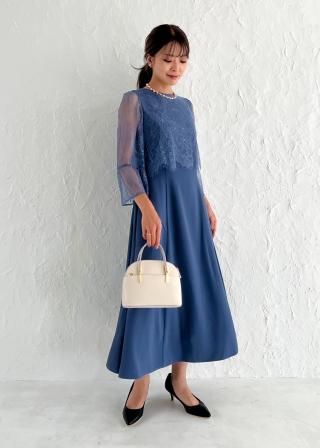 ・ノースリーブドレスに重ねる、袖付きのレースプルオーバーがセットになったオケージョンアイテム。