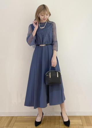 ワンピースだけではシルエットが気になるかたには総レースのトップスを上から合わせ、体型カバーに◎