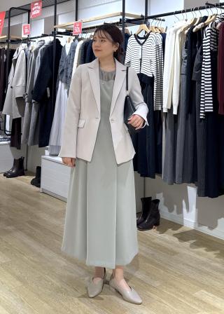 ・季節を問わず活躍し、寒い時期はロングアウターを合わせると上品なムードを損なわず着こなせる。