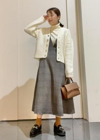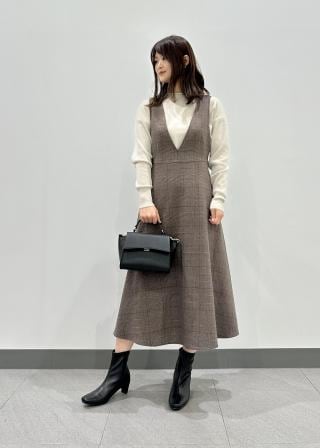 ・薄手のタートルニットやスウィートなブラウスを重ねてエレガントな着こなしに。