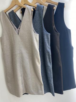 ・大人な深Vネックと、フレッシュなミニ丈をミックスしたジャンパースカート。